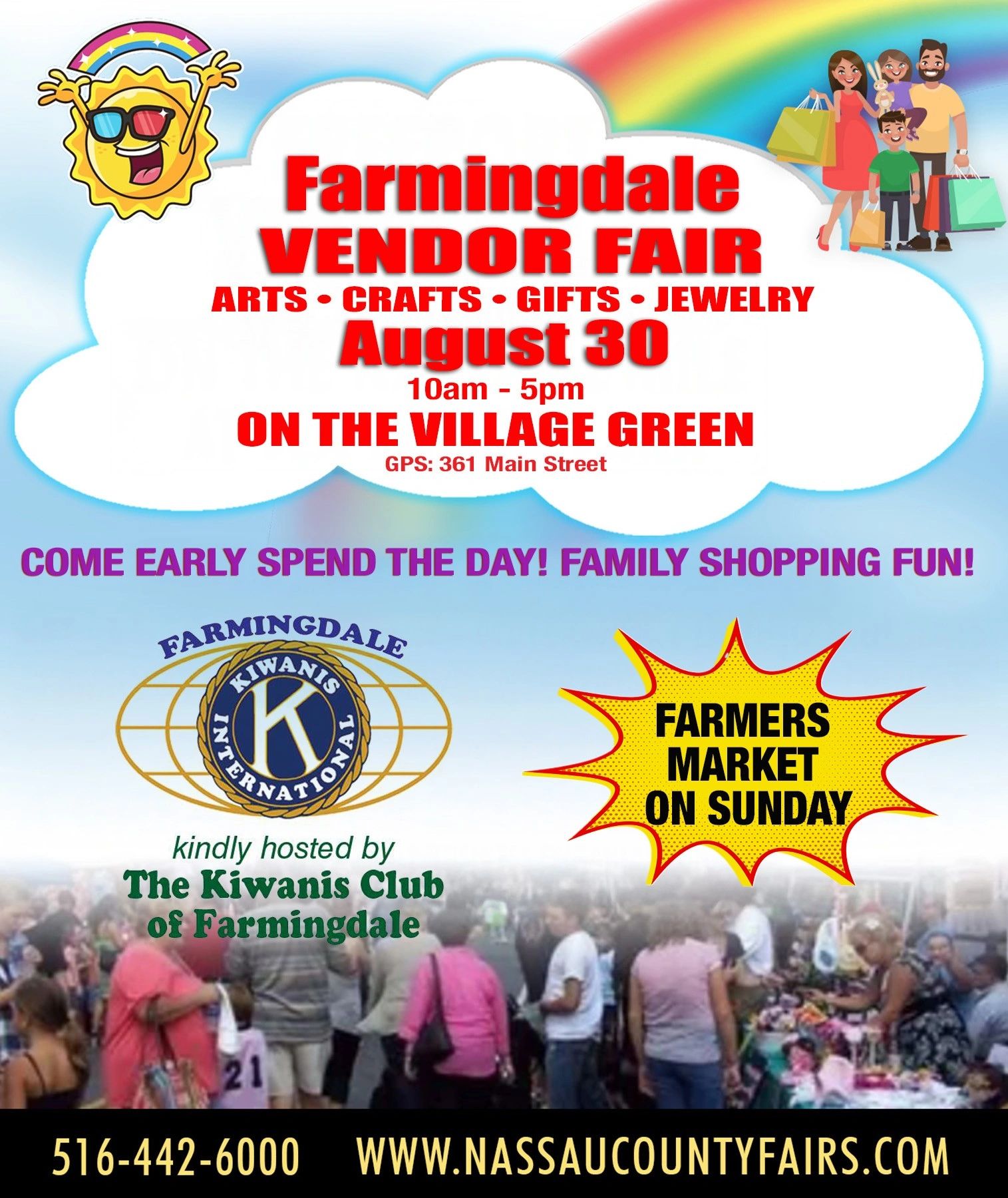If you cannot find a staff member when you arrive to set up, please ask any vendor where they can be found or call us at 516-442-6000 because we might be anywhere on the grounds helping other vendors.